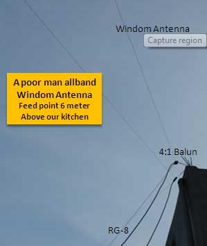 Selanjutnya radiator pendek adalah sepanjang 36%*L dan radiator panjang adalah 64%*L, pada pertemuan keduanya ditempatkan sebuah balun 4:1 sebagai feed-point. Antenna saya bentangkan sesuai kontur yang ada pada ketinggian feed-point hanya 6 meter (karena nggak punya tower), dan masing-masing end radiator ketinggian sekitar 2.5-3 meter. Kedua radiator saya buat dari bahan berbeda, seadanya, makanya antenna ini disebut sebagai “A Poor Man” hehehe … yaitu radiator pendek dari seutas kabel NYA sekitar 1.2mm sisa instalasi listrik yang karena panjangnya nggak nyape, saya sambung dengan kawat email 1mm sampai panjang terpenuhi. Sementara itu radiator panjang lebih menyedihkan, sekitar 10meter pertama dari feed-point terbuat dari email bekas 1.5mm, lalu sisanya disambung dengan email bekas juga dengan diameter 1mm. Masing-masing end point saya talikan dengan tali rafia plastik diameter 3mm, saya sangkutkan pada car-port dan pagar perumahan … hehehe.