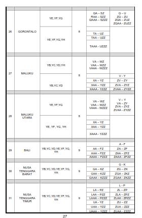 1. Suffix A – Z, ZA – ZZ, ZAA – ZZZ, ZAAA – ZZZZ dialokasikan untuk IAR Khusus;