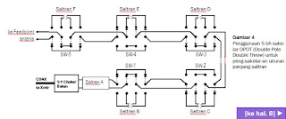BTW, kalau susah didapat, DPDT switches pada Gam- bar 4 bisa diganti dengan pasangan (male/female) konektor banana plug biasa yang dipasang di masing- masing ujung potongan-potongan Saltran A, B, C, D dan E — dan dioperasikan dengan saling mencolokkannya sesuai dengan kombinasi yang dikehendaki.