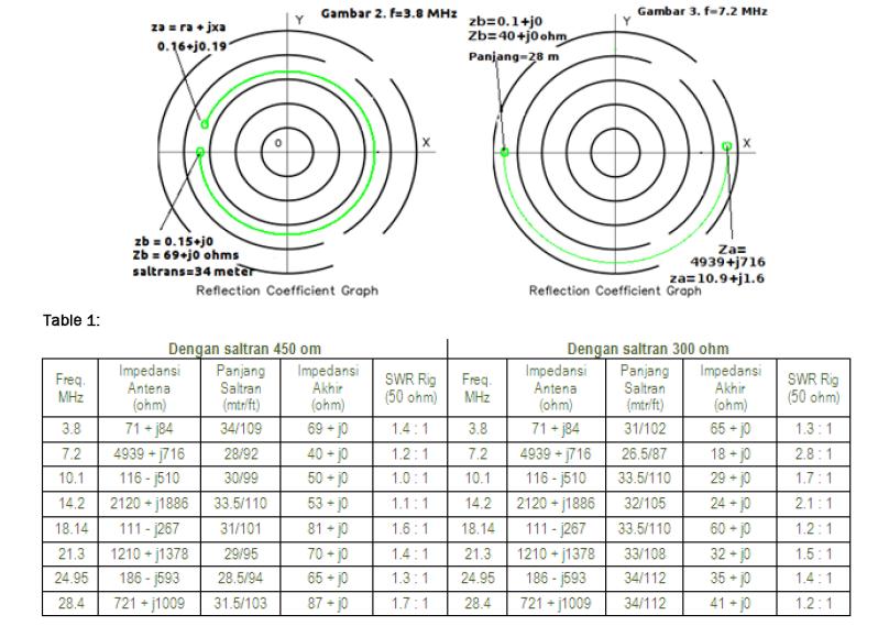 Bila kita teruskan proses ini untuk semua frekuensi untuk saltran 450 ohm dan 300 ohm, kita dapatkan Tabel 1 seperti di halaman berikut, dimana bisa disim- pulkan bahwa hasil-hasil transformasi cukup dekat dengan 50 ohm, sehingga rig kita bisa bekerja dengan aman.