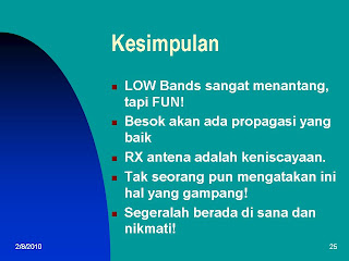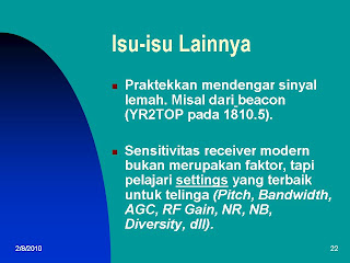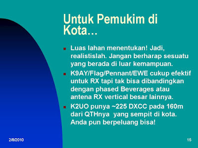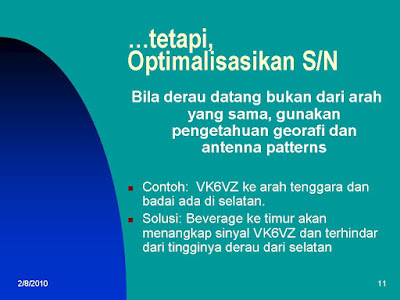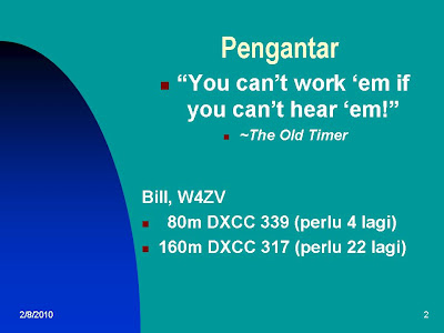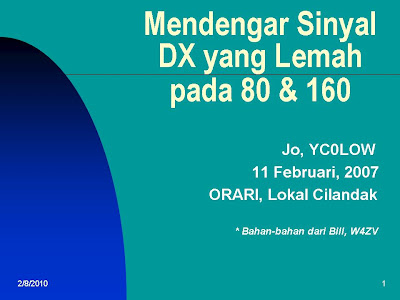Februari 2007, saya diminta oleh Orari Lokal Cilandak (lokal saya) untuk memberi semacam ceramah tentang cara mendengar sinyal DX yang lemah pada 80m dan 160m di hadapan teman-teman.
