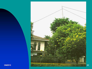 Gambar terakhir di bawah ini adalah foto antena TX inverted-L 160m dan G5RV 80m yang pernah saya dirikan di Cinere, 2007.