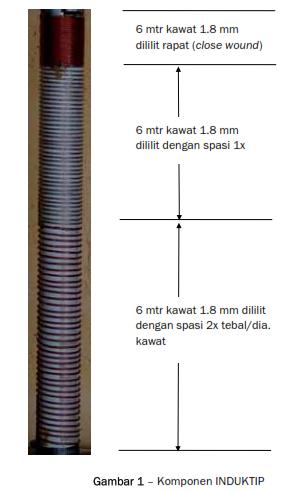 Gambar 1 memperlihatkan komponen induktip atau segmen helikal ini (pada gambar spasi antar lilitan BE-