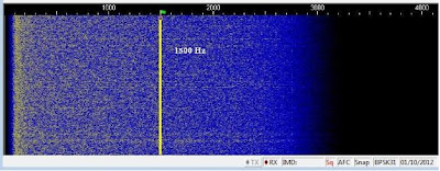 With your PSK31 software display configured to indicate audio frequencies, click your mouse cursor at the 1500 Hz mark (see below). With your radio in the USB mode, this marker indicates the center of the channel and it is the frequency on which you should be transmitting.