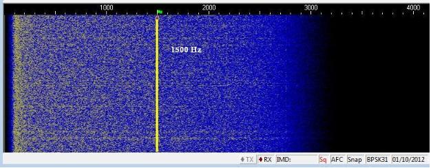 With your PSK31 software display configured to indicate audio frequencies, click your mouse cursor at the 1500 Hz mark (see below). With your radio in the USB mode, this marker indicates the center of the channel and it is the frequency on which you should be transmitting.
