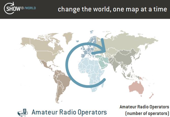This amateur radio world map resizes the countries based on the number of licensed operators. The data comes from the IARU (International Amateur Radio Union). I was able to create this map with the assistance of the folks at SHOW/Mappingworld.