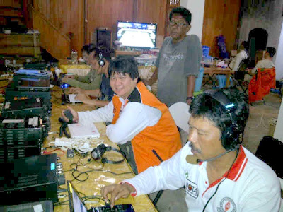 Gbr. 16. Terry YC1KAF (bertopi) dan Joz YD1JZ, sedang bertugas mengoperasikan stasiun-stasiun 80m dan 40m CW