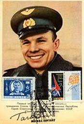 Dikenal juga sebagai (a.k.a) Columbus of the Cosmos, Yuri Alekseyevich Gagarin (9 Maret 1934 – 27 Maret 1968) adalah manusia (kosmonot) pertama yang berhasil melakukan penerbangan ke ruang angkasa luar (outer space), ketika pesawat Vostok(= East =Timur) I membawanya mengangkasa untuk penerbangan sekali putaran selama 108 menit di orbit bumi pada tanggal 12 April 1961.