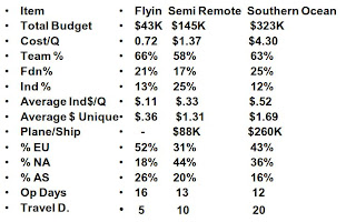 • Average cost, $323,000, average cost per QSO: $4.30. Individual contributions (pre/post): 52 cents per Q/ $1.69 per unique callsign.