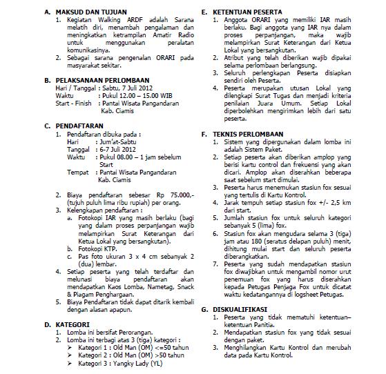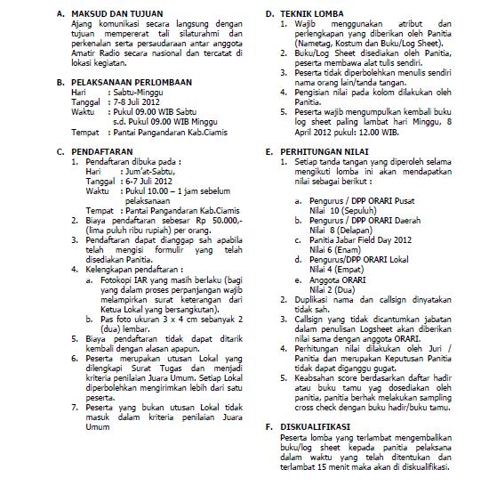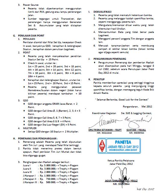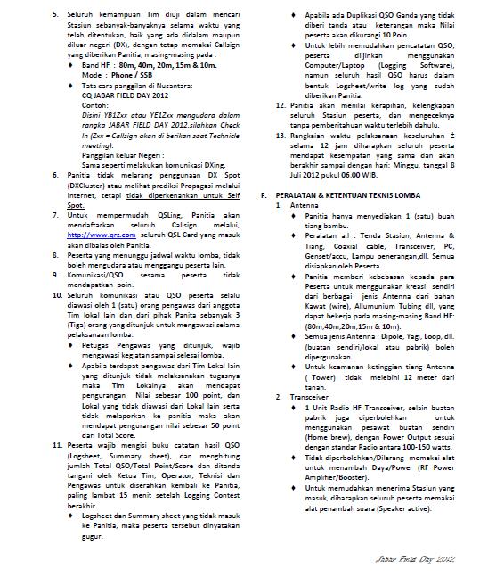 JABAR FIELD DAY 2012, Pangandaran 6-7-8 Juli 2012, Juklak