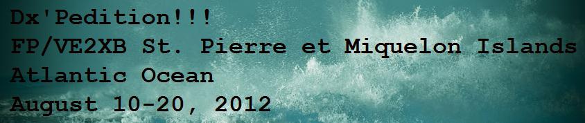 FP/VE2XB will be qrv from 10-20 August, 2012 using 160-10m including the WARC bands 12, 17, and 30m and 6m when there are openings.