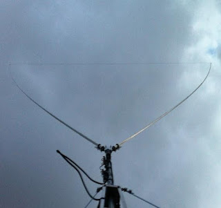 Apabila mounting dan elemen dari tubing sudah tersusun, maka kita bisa pasangkan elemen yg terbuat dari wire untuk posisi vertikal diatas. Panjang wire dengan ukuran diameter 1 mm tsb adalah 476 cm, apabila tidak ada kawat stainless steel, maka kawat tembaga biasa atau kawat speaker juga bisa dipergunakan. pada ujungnya kawat tsb dipasang terminal untuk mengikatnya di elemen tubing paling atas seperti terlihat pada gambar berikut: