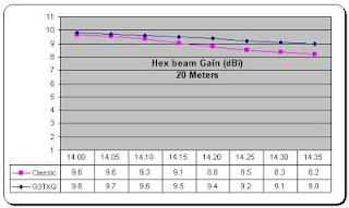The forward gain of the G3TXQ hexagonal beam is slightly better than the classic design.