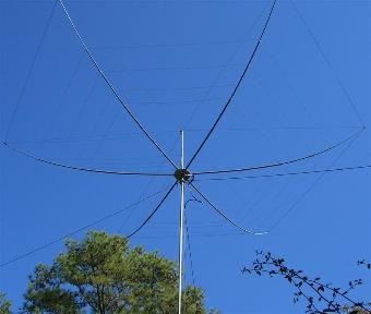 The hexagonal beam consists of two elements for each band. The driven element is in the shape of an “M” and the reflector element is wrapped around the four spreaders to the rear of the driver wires. The elements are made of wire instead of tubes used by most Yagi antennas Therefore there is a need for a supporting structure. The supporting structure consists of six flexible fiberglass tubes attached to a base. The tubes are as shown and thus the name hexagonal beam.