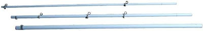 The thinner pieces slip easily into the next larger pieces for a telescoping structure that will be 136″ long when assembled. Each section is 48″ long. Note the two clamps that tighten the three sections together. You should assemble six such telescoping spreader arms.
