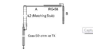 Untuk matching stub (L2 pada gambar) Basiloto meng- gunakan 300 ohm Ribbon Type TV feeder (Radio Shack P/N 15-1175), dengan VF/velocity factor 0.8, tetapi Basiloto juga bilang bahwa any parallel balanced wire bisa dipakai (kalau tidak ketahuan berapa VF-nya — seperti pada open wire biksen — tentunya ukuran yang pas mesti dicari dengan cara trial & error.)