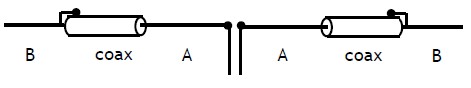 Perhatikan bahwa hanya satu ujung outer braid dari coax (ujung ke arah luar) yang dishort/dikonèk dengan segmen B.