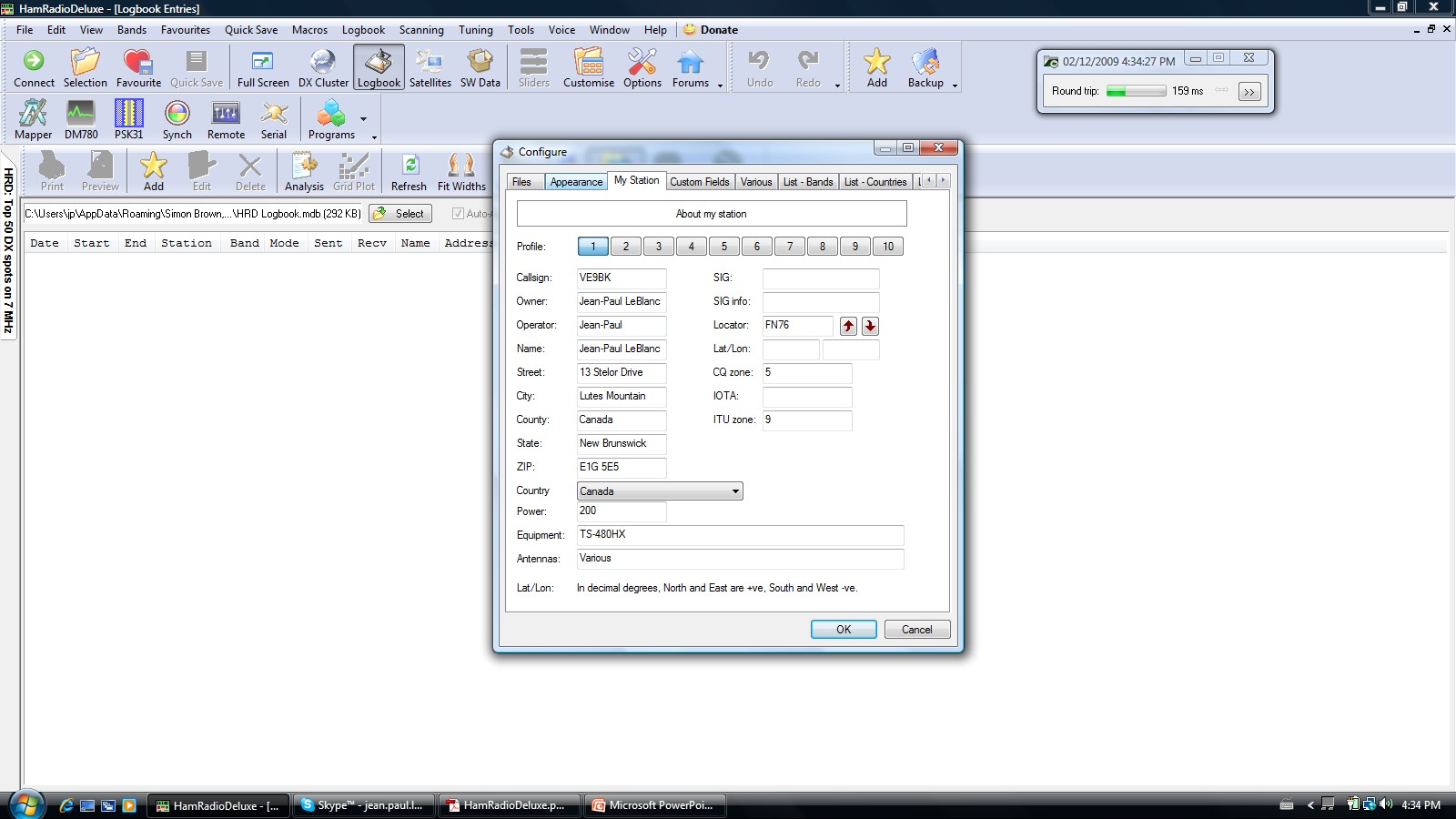 Another key component of HRD is logging. The first time you open up the logging module of the program, you will be prompted to fill in information regarding yourself and your station. The more information you can provide the more automated and flexible your station logging program will be.