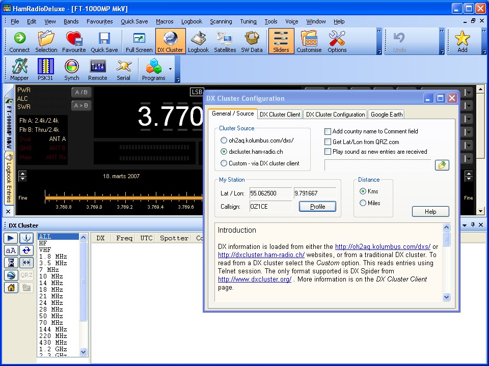 DX-Cluster should now appear