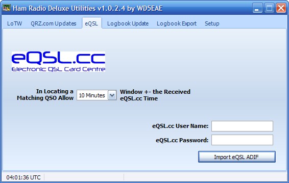 If you want HRDU to download the eQSL confirmations then enter your eQSL.cc username and password in the proper fields. If you manually download the ADIF file and want those entries entered