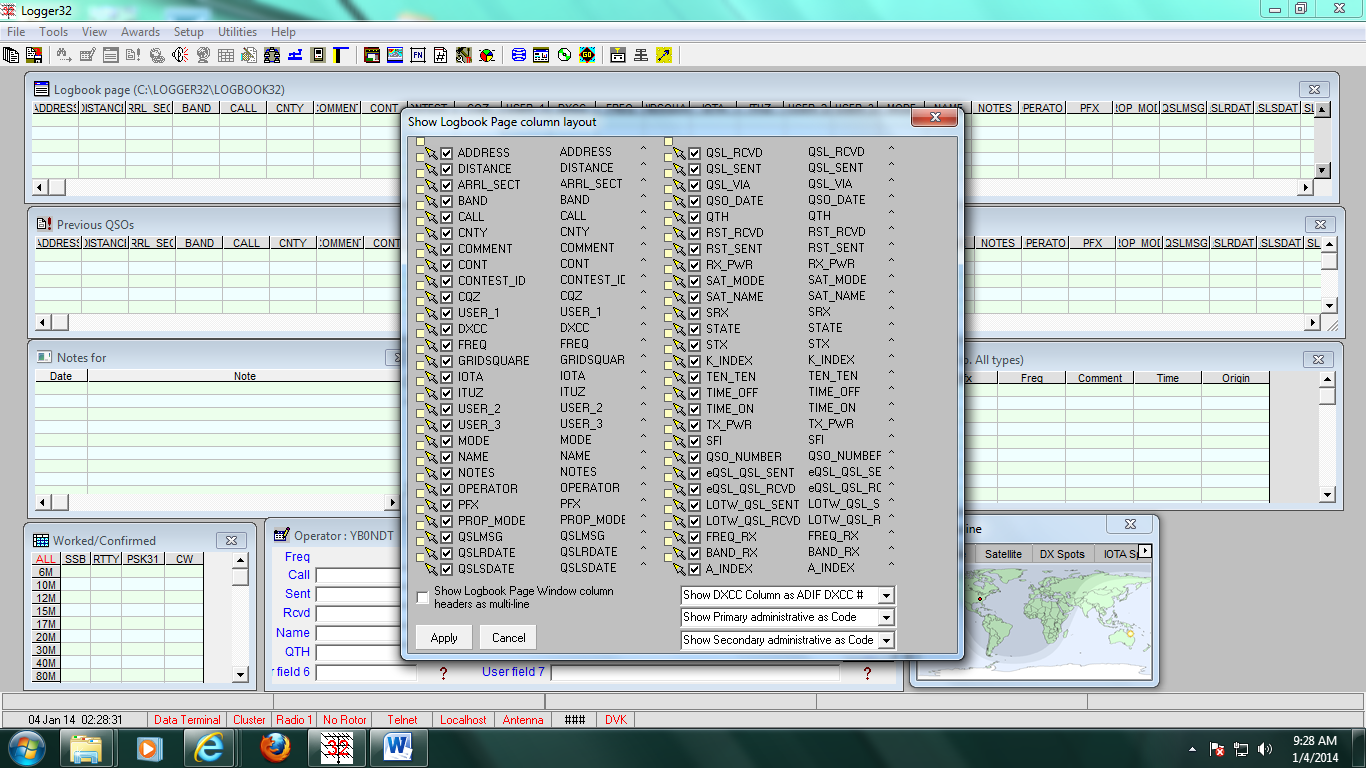 Pada gambar di atas, inilah kolom-kolom yang mau saya tampilkan meliputi: Band, Call,CNTY,Comment, Contest ID, CQZ (CQ Zone), DXCC, FREQ,IOTA, dsb.