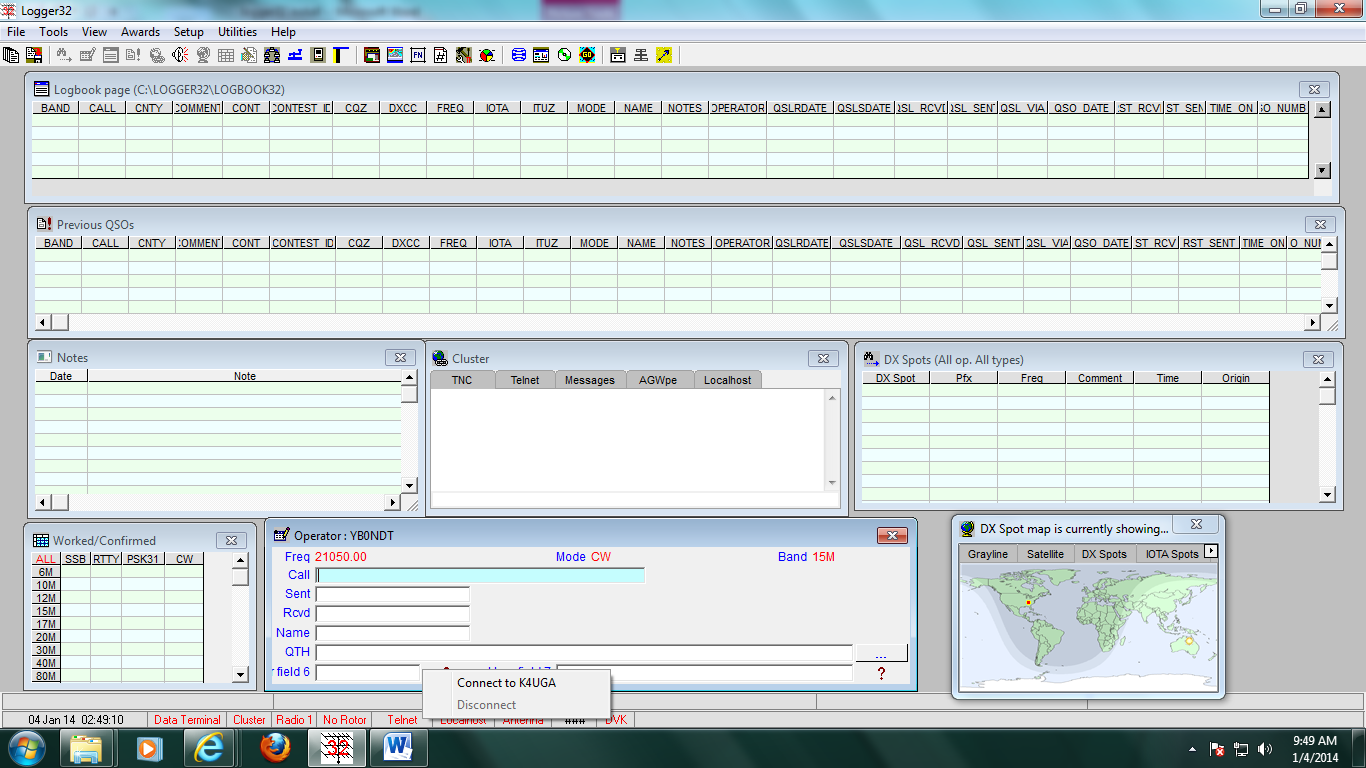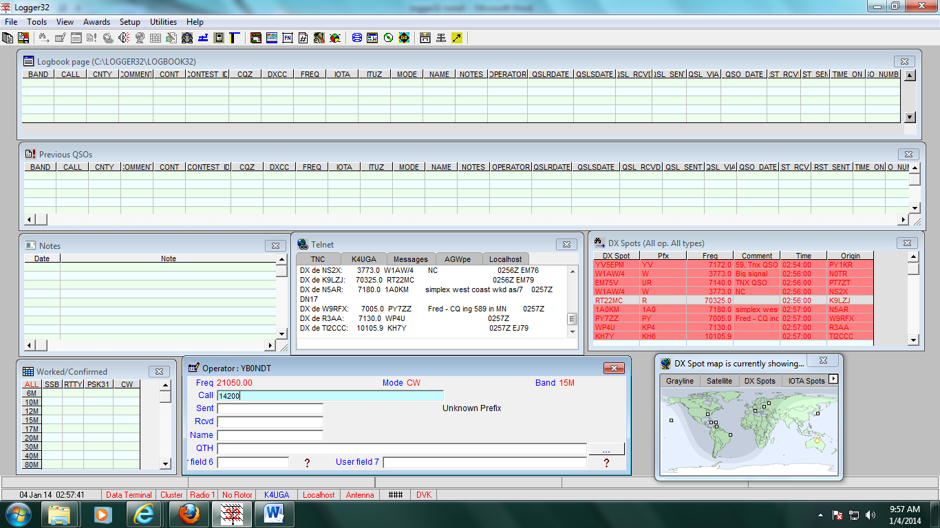 DX Spot telah berhasil di aktivkan, kini Logger 32 siap untuk di gunakan.