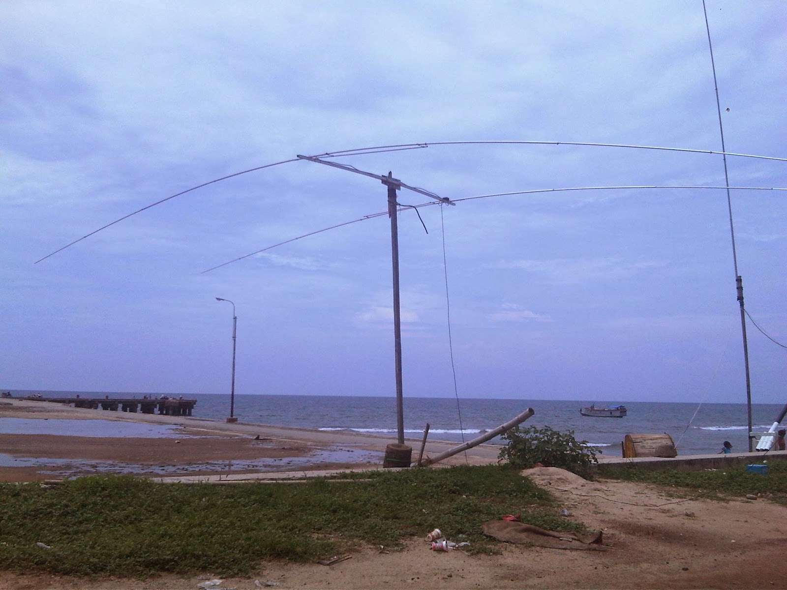 Starting from 12:30 UTC, I start to unload all the equipment and the first one I started to compile a series of mini multi yagi antenna HX52A about 30 minutes completed and the antenna directly established with a wooden pole with a height of approximately 5 meters from the ground sand .