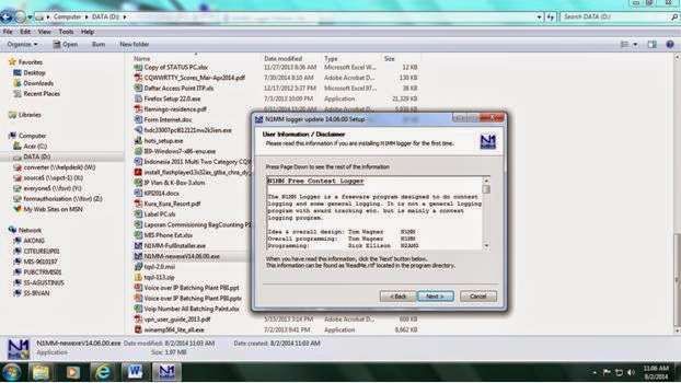Untuk saat ini, N1MM Logger ini bisa di gunakan pada computer minimal Pentium 3 dengan memory minimal 512 MB dgn base operating system minimal Window XP. Selain itu dapat juga di gunakan sampai base operating system Window 8.Pada artikel kali ini saya akan mencoba melakukan instalasi pada base operating system Window 7.