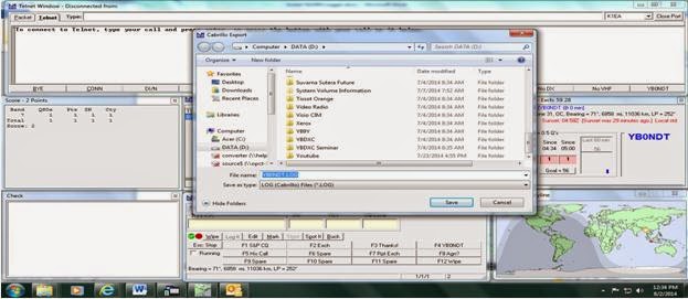 Seperti inilah file cabrilo. Hanya bisa di akses dengan notepad. File YB0NDT.LOG ini yang nantinya di kirim via email ke panitia contest.
