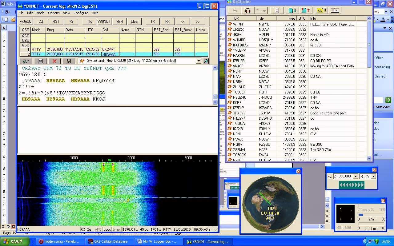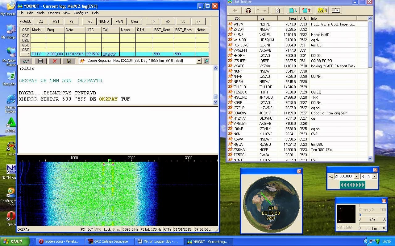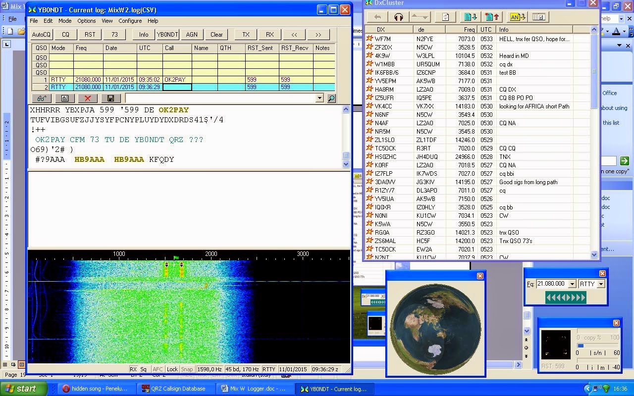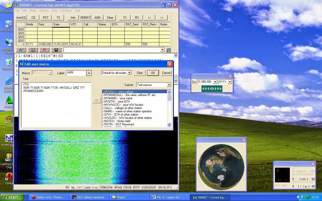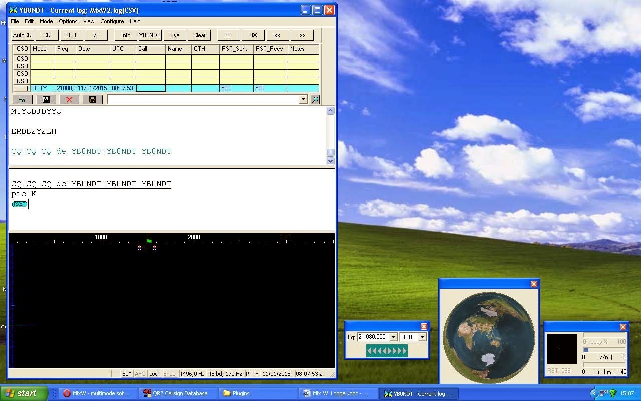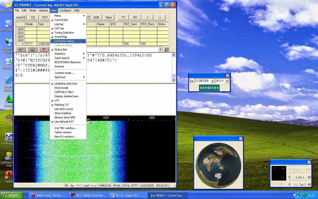 Saya sekarang akan mencoba DX ing dengan mode RTTY pada 15 m band, maka mode harus RTTY, Fq saya pilih 15m dan kotak sebelahnya saya pilih RTTY