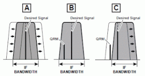 Sebagai contoh: kita bekerja di 7.0650 Mhz dan kebetulan di daerah lain 7.00625 Mhz juga dipergunakan. Selisih jarak kurang dari 3Khz, maka pasti ada gangguan-gangguan kecil berupa suara decit atau menimbulkan qrm. Ini dimana saatnya kita untuk menghidupkan fungsi roofing filter tersebut.