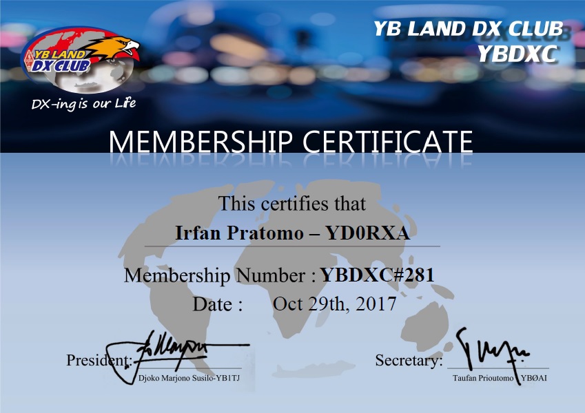 Welcome YD0RXA As YBDXC#281 Administrator 29 Oktober 2017 Certificate, YBDXC 1,007 Views Share tweet YD0RXA YBDXC#281 CERTIFICATE