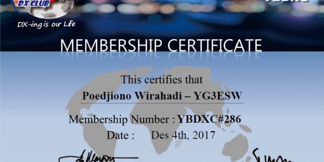 Welcome YG3ESW As YBDXC#286 Administrator 4 Desember 2017 Certificate, YBDXC 986 Views Share tweet YG3ESW YBDXC#286 CERTIFICATE