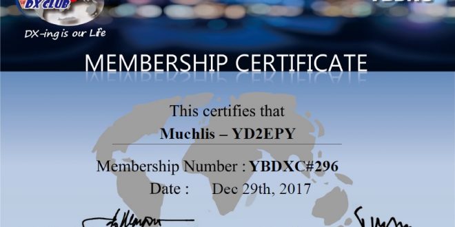 Welcome YD2EPY As YBDXC#296 Administrator 29 Desember 2017 Certificate, YBDXC 1,016 Views Share tweet YD2EPY YBDXC#296 CERTIFICATE
