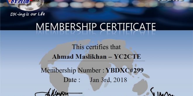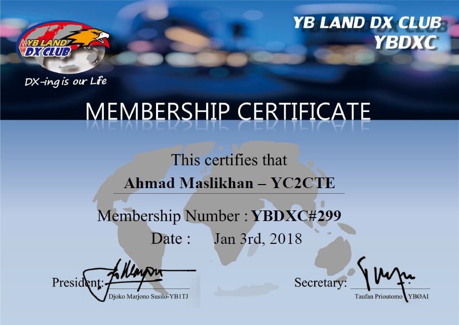 Welcome YC2CTE As YBDXC#299 Administrator 3 Januari 2018 Certificate, YBDXC 1,024 Views Share tweet YC2CTE YBDXC#299 CERTIFICATE