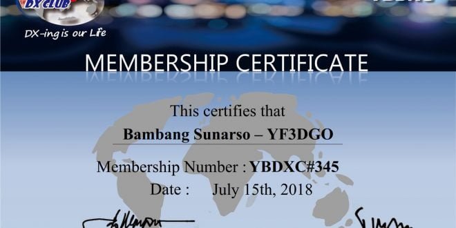 Welcome YF3DGO As YBDXC#345 Administrator 15 Juli 2018 Certificate, YBDXC 800 Views Share tweet CERTIFICATE DOWNLOADYF3DGO