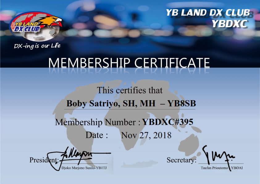 Welcome YB8SB As YBDXC#395 Administrator 28 November 2018 Uncategorized 797 Views Share tweet CERTIFICATE DOWNLOAD