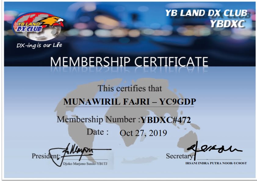 Welcome YC9GDP As YBDXC#472 Administrator 27 Oktober 2019 Certificate, Member, YBDXC 680 Views Share tweet DOWNLOAD CERTIFICATEsertificate-YBDXC YC9GDP