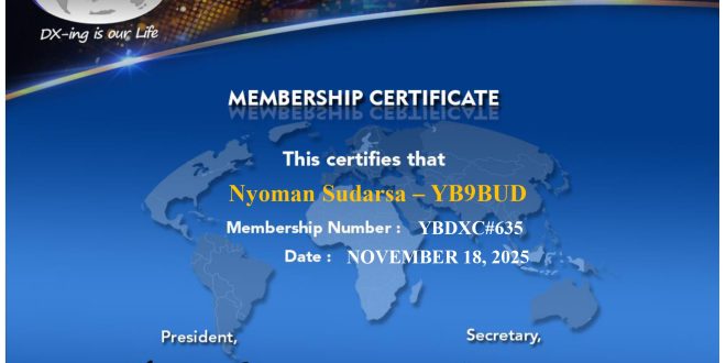 WELCOME YB9BUD AS YBDXC#635 Administrator 18 November 2025 Certificate 7 Views Share tweet DOWNLOAD CERTIFICATE YB9BUD